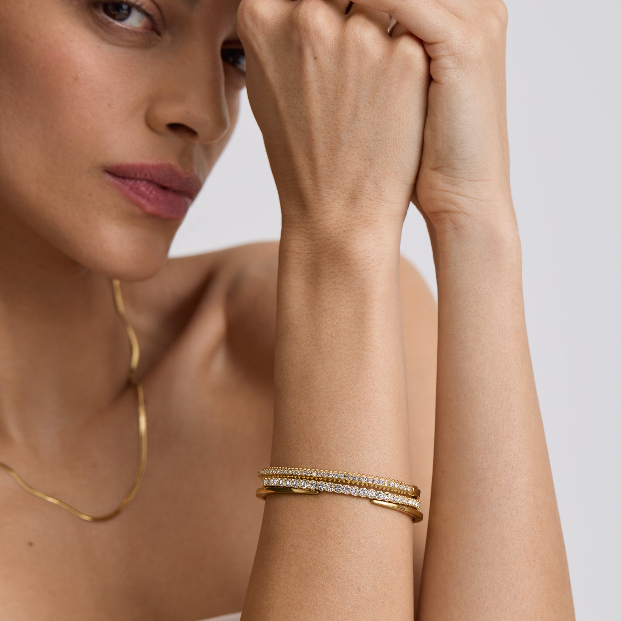 Meet the D.LOUISE Diamond Trio - a set of three bangles designed to sparkle solo or stack in style. Featuring our signature styles, each piece adds effortless shine to your everyday.