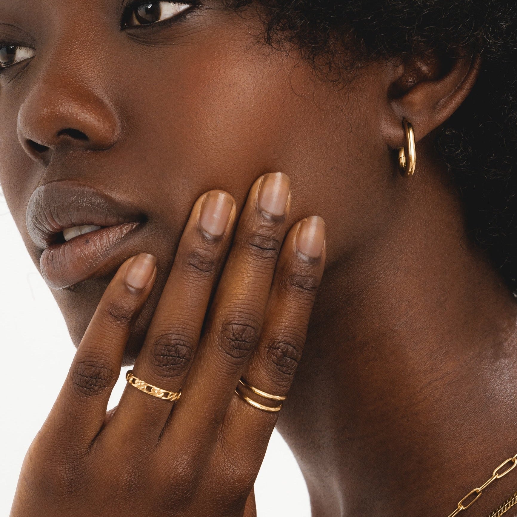 The Figaro collection is a new favourite of ours. This gorgeous Figaro gold stacking ring is a lovely finish to your jewelry collection. Featuring a smooth curvature, it can be worn solo or stacked with other rings for a chic look.