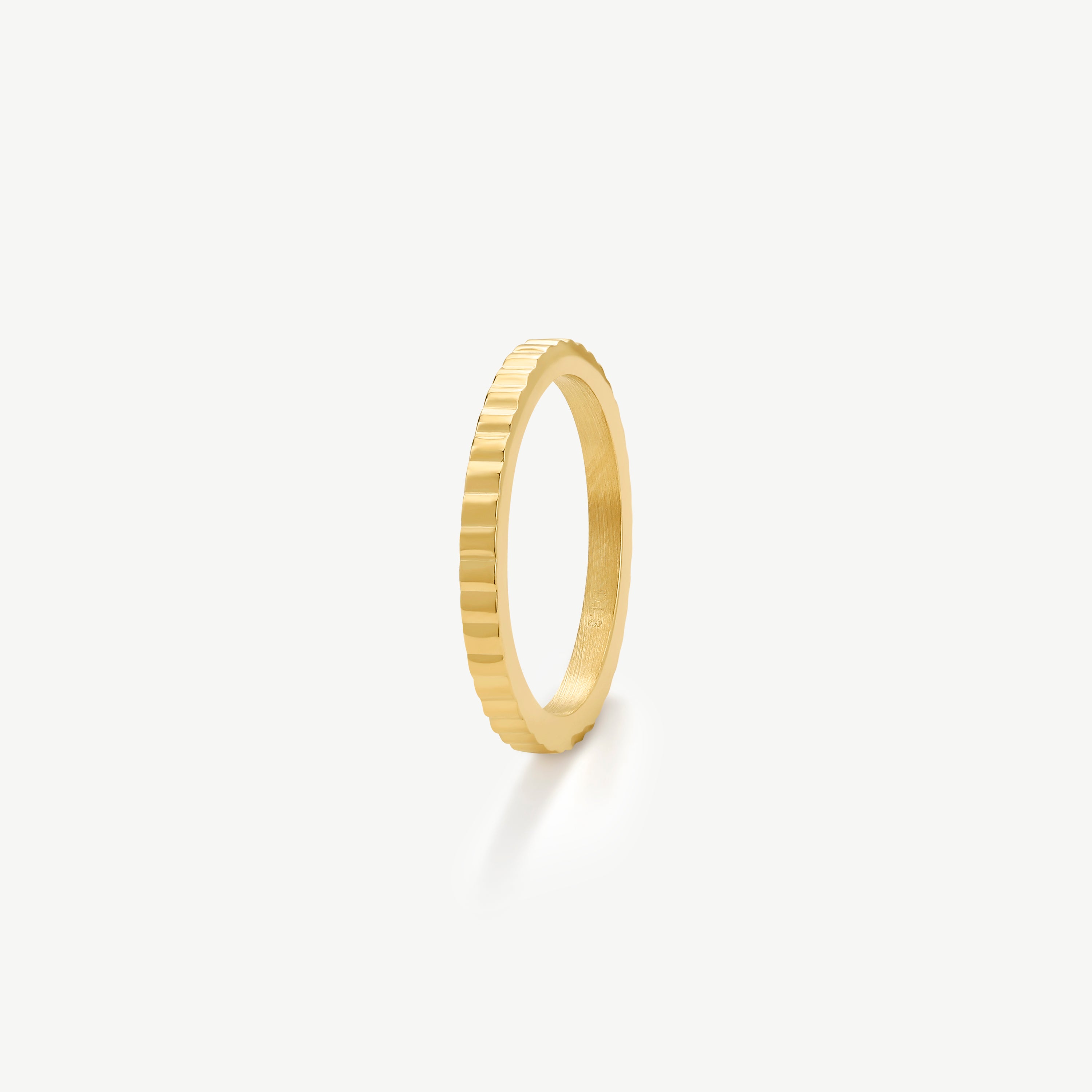 Elevate your ring game with the Mini Pleat Slim Ring. Its pleated design adds a modern touch to your ring stacks.