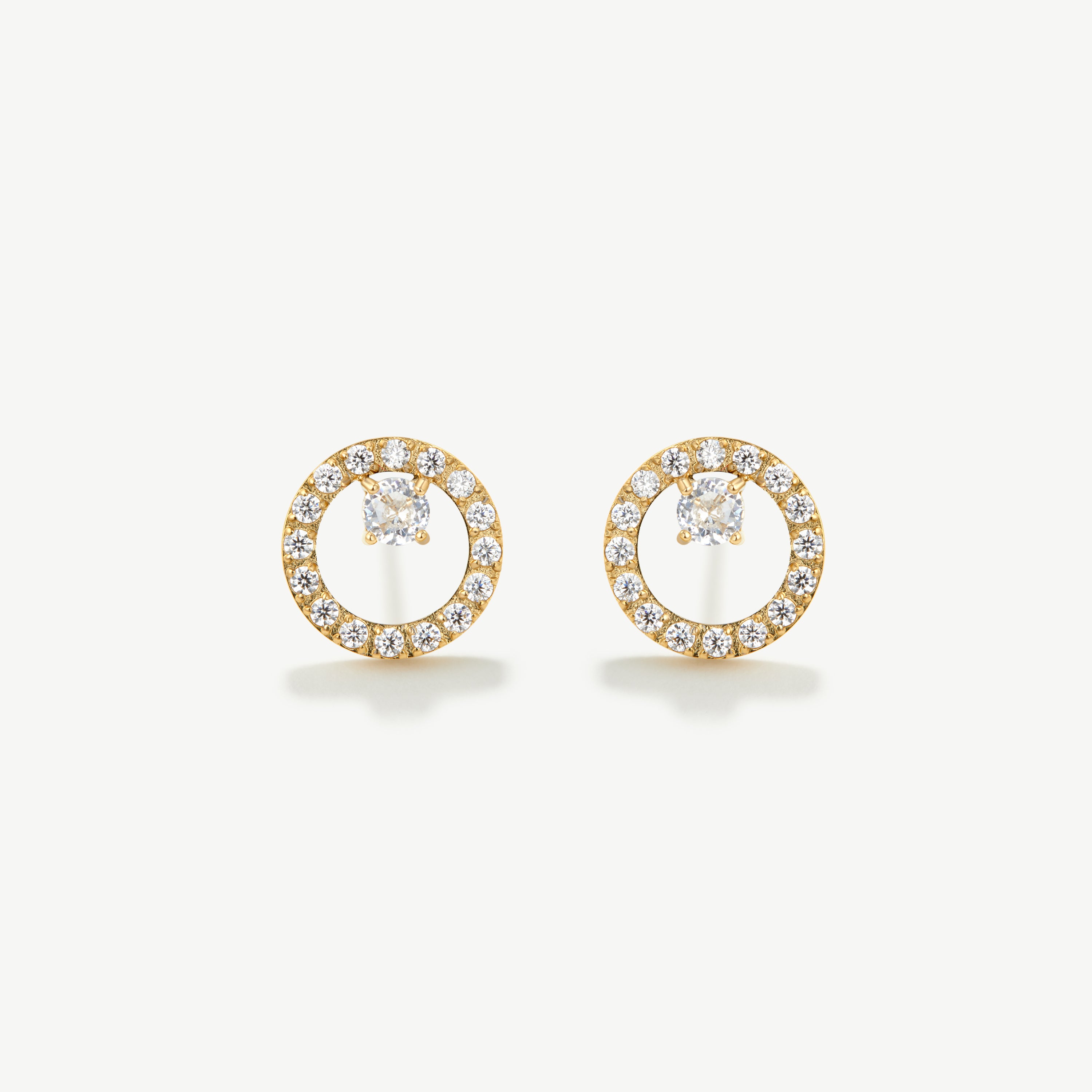 These beautiful studs feature a stunning pavé halo with a cubic zirconia accent; a truly unique piece that adds effortless elegance to any look.