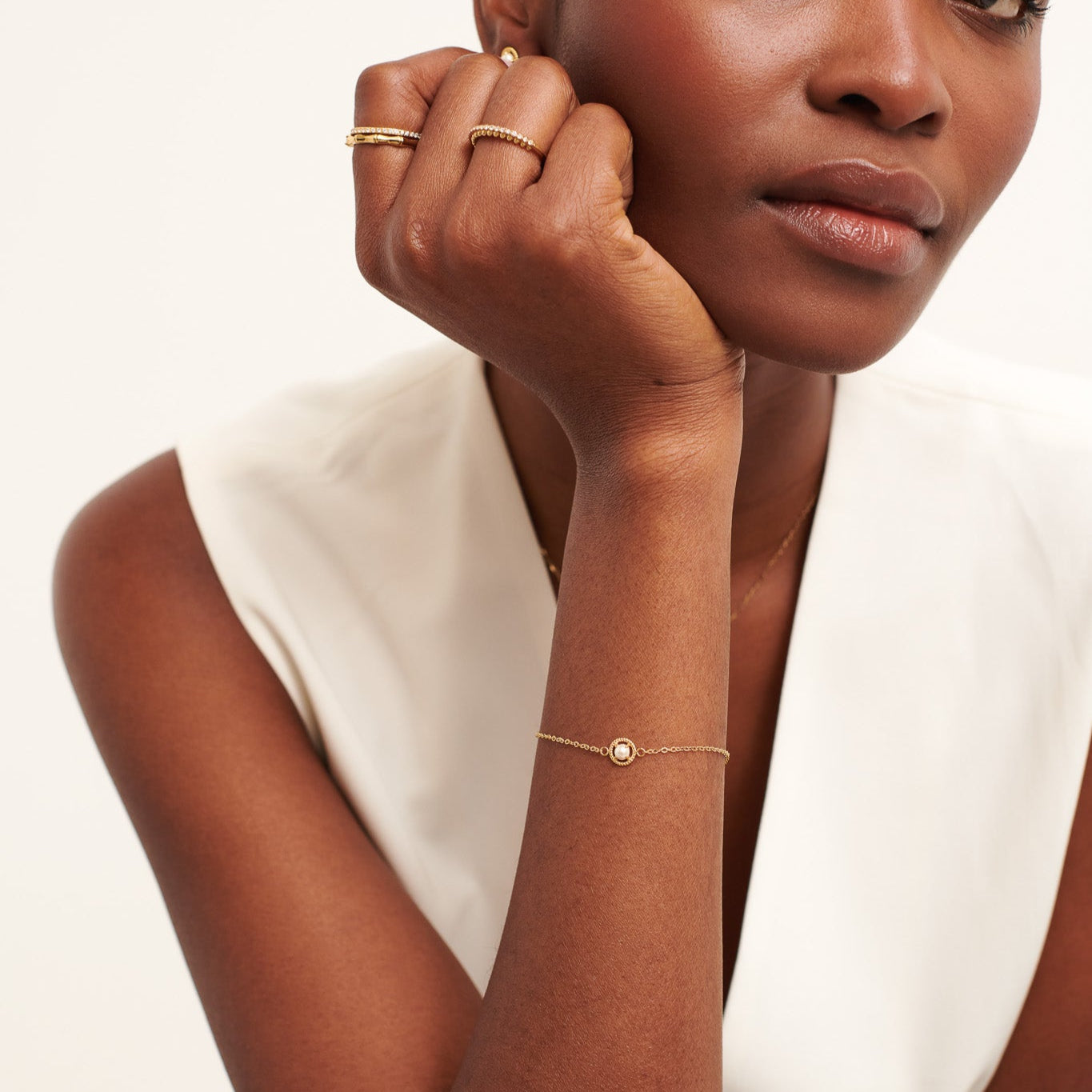 Combining a pearl accent and rope details, this delicate chain bracelet is perfect for adding some vintage glamour to your bracelet stacks.