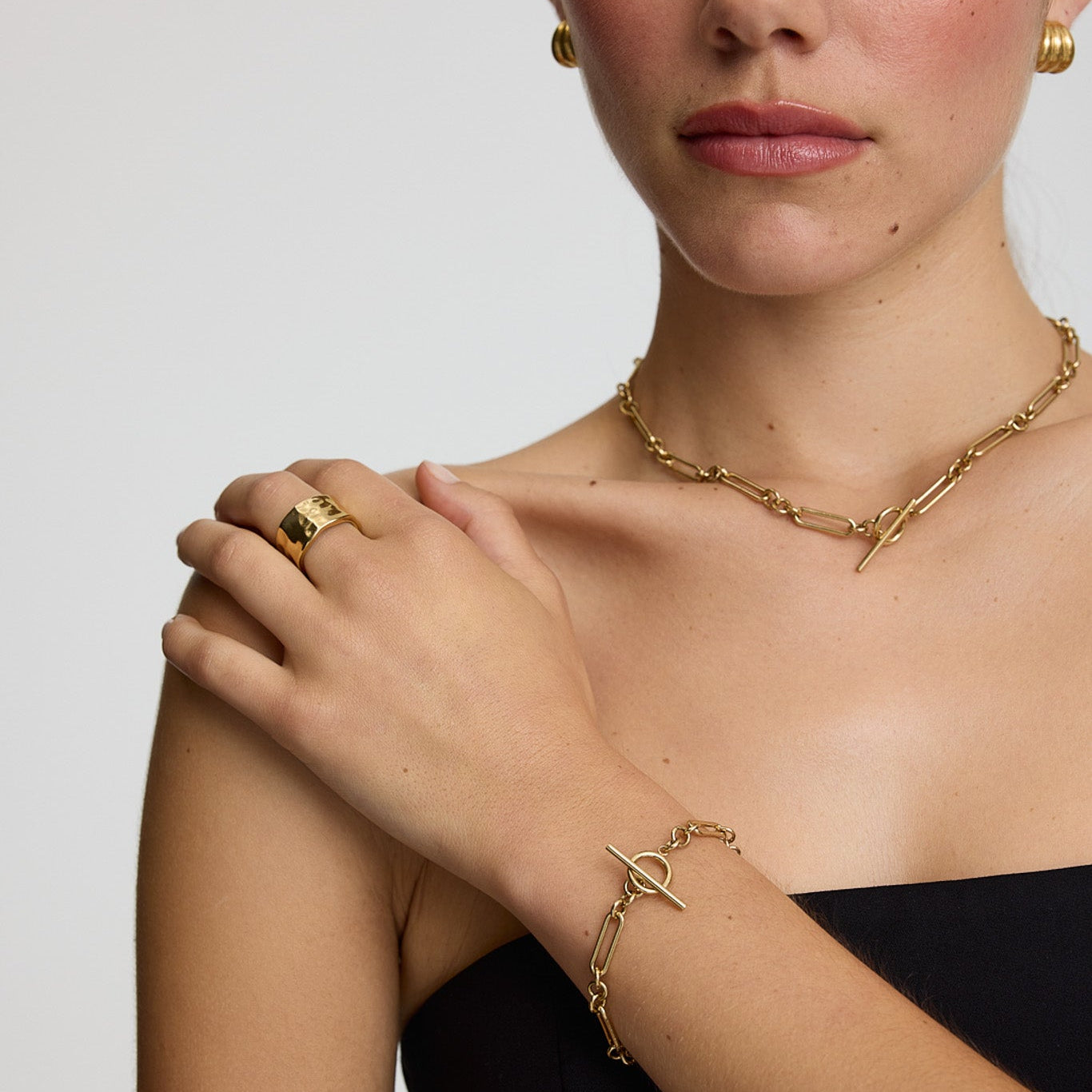 The Love Link T-Bar Bracelet redefines classic chain styling with a contemporary twist.