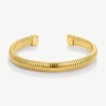 Introducing the Cable Bangle - a must-have addition to your bracelet stack. Its unique design guarantees a perfect fit for any wrist, and its ribbed detailing offers a bold touch to elevate any outfit.