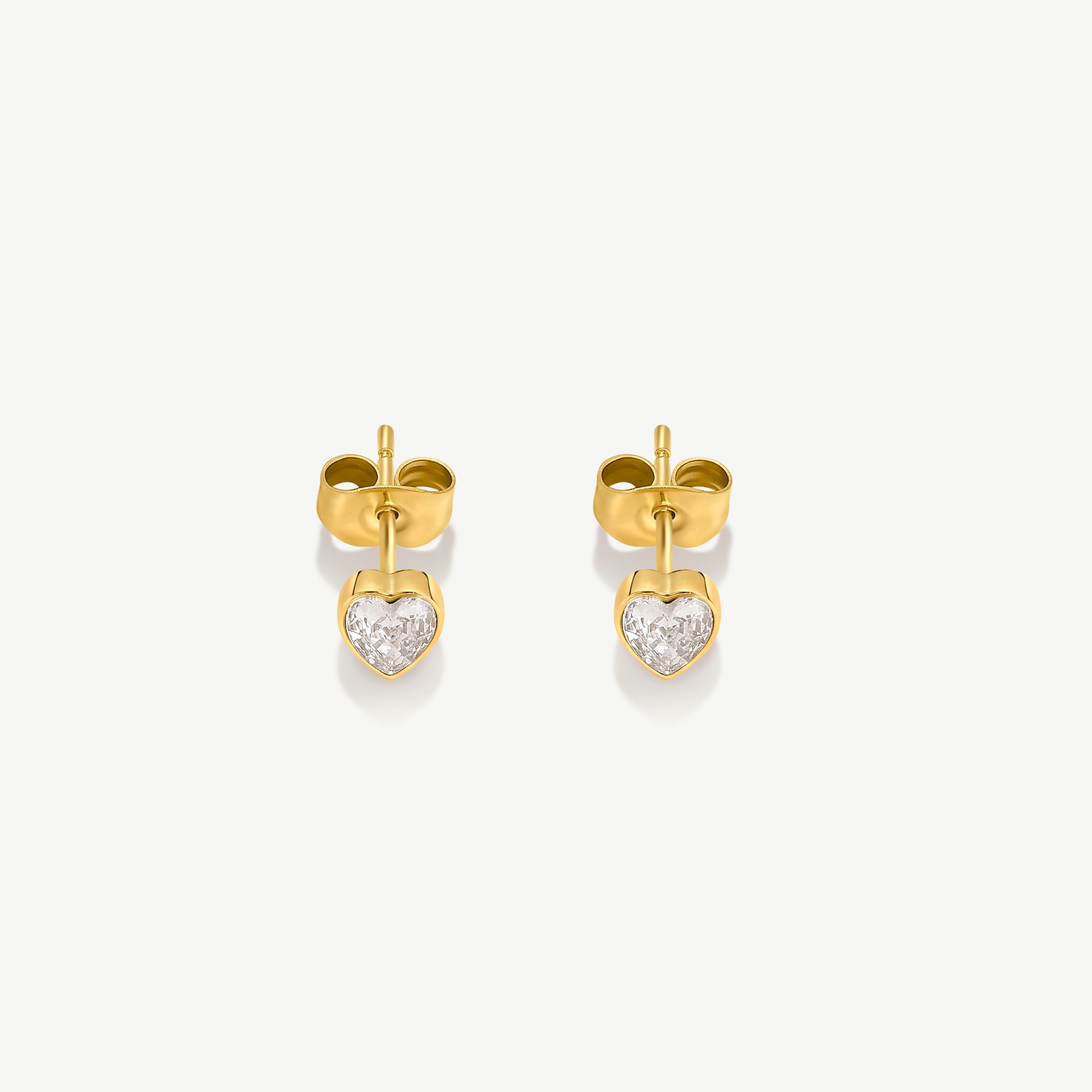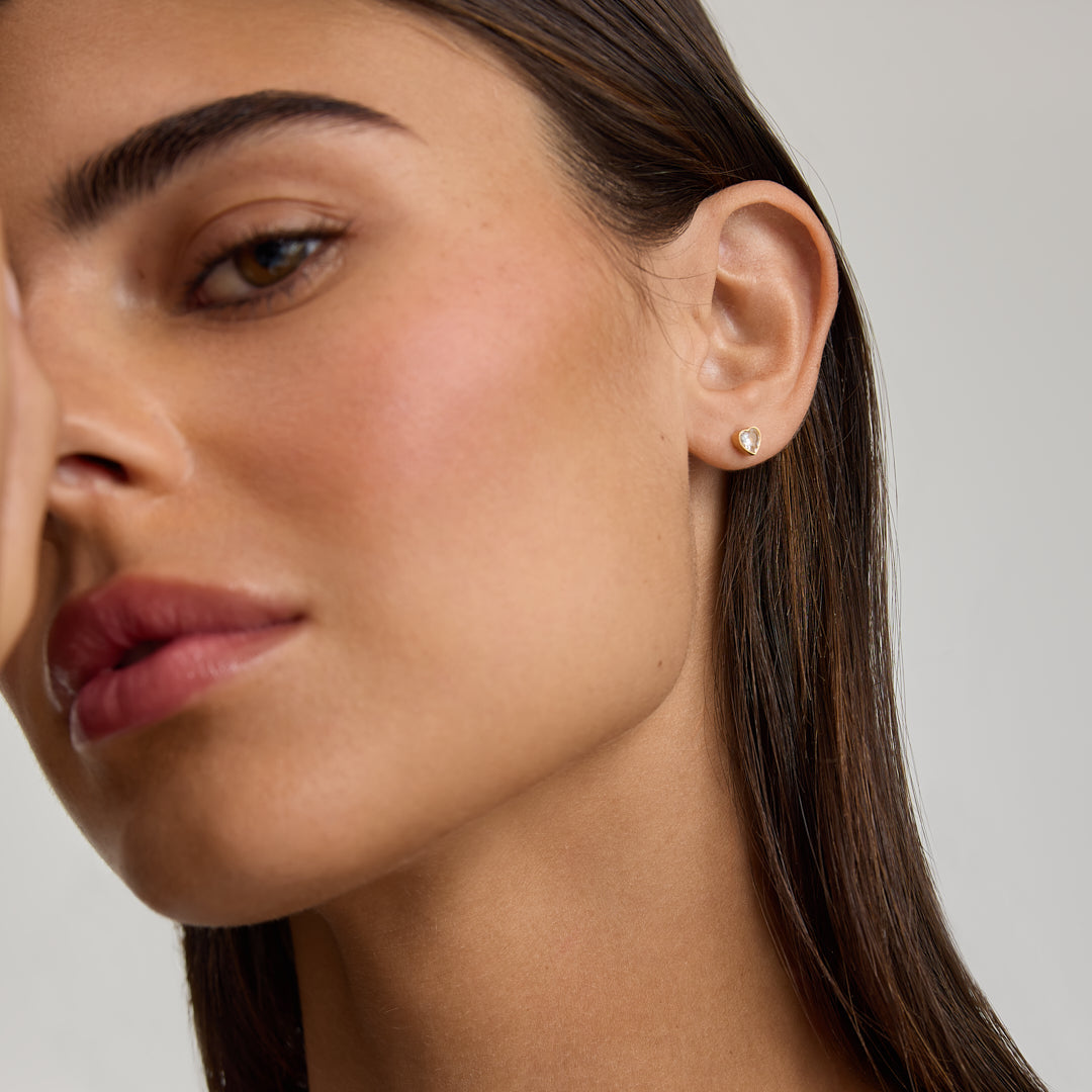 Dainty stud earrings featuring a single sparkling stones of a polished heart - a subtle mix of shine and sentiment.