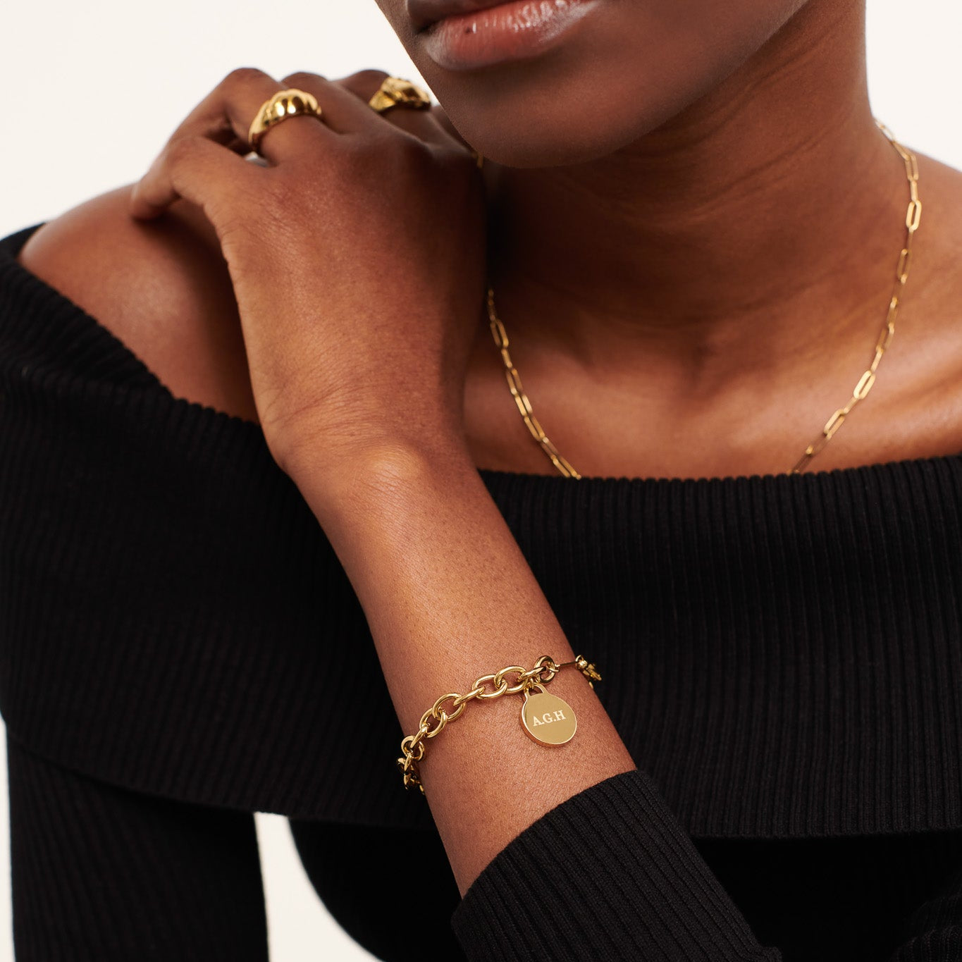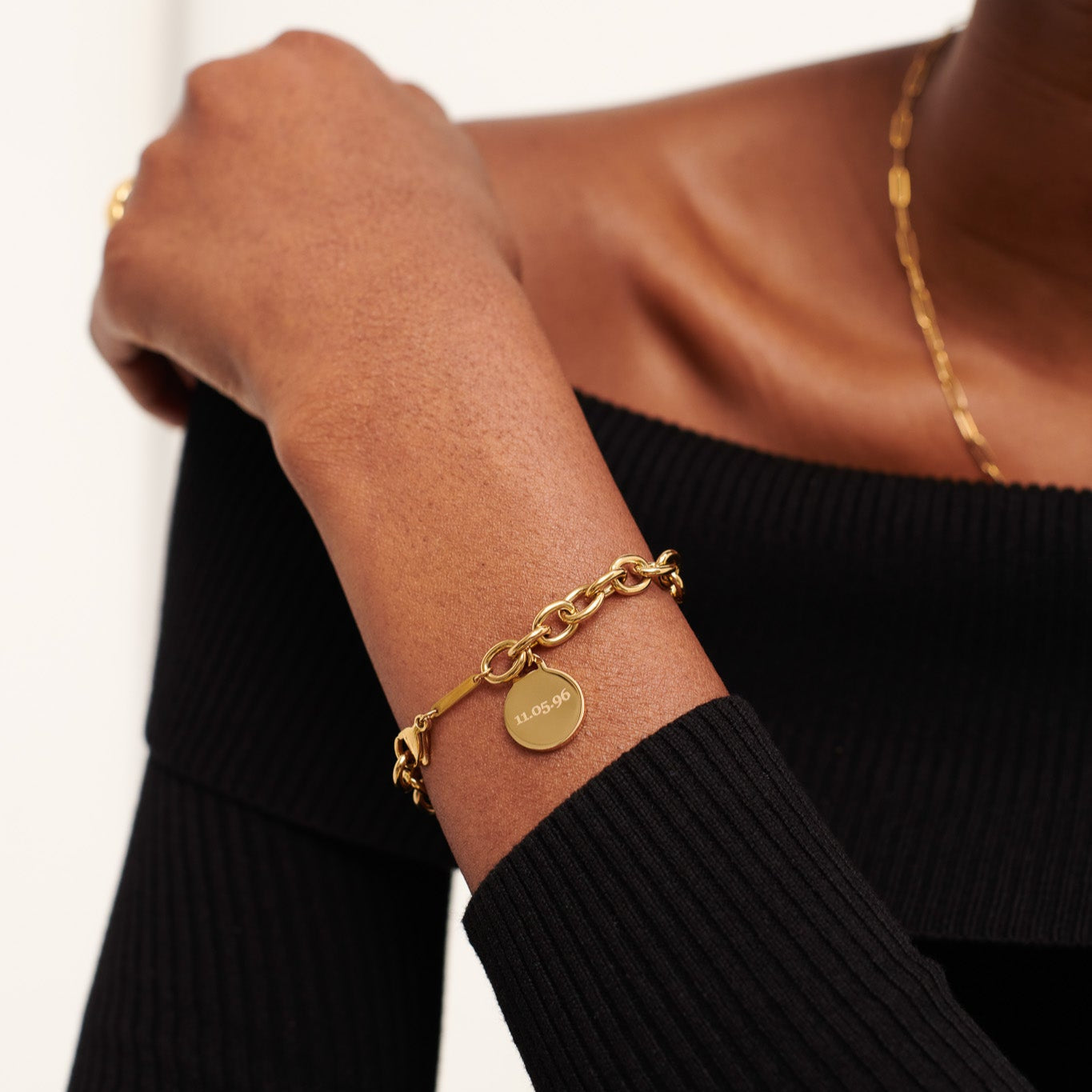 A timeless classic that can't go wrong with, this classic disc bracelet can be engraved with a personalized message to make it one-of-a-kind to you.