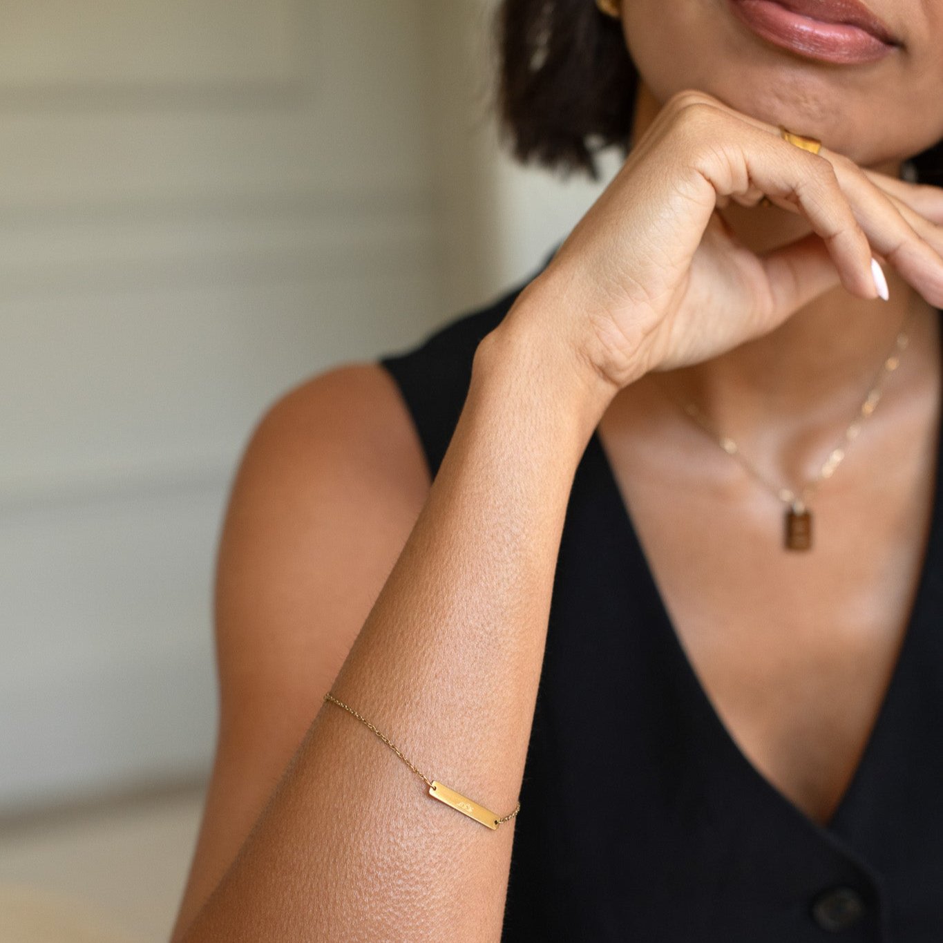 This delicate bracelet features a customizable disc, allowing you to add a personal touch to your bracelet stack and create a one-of-a-kind piece.