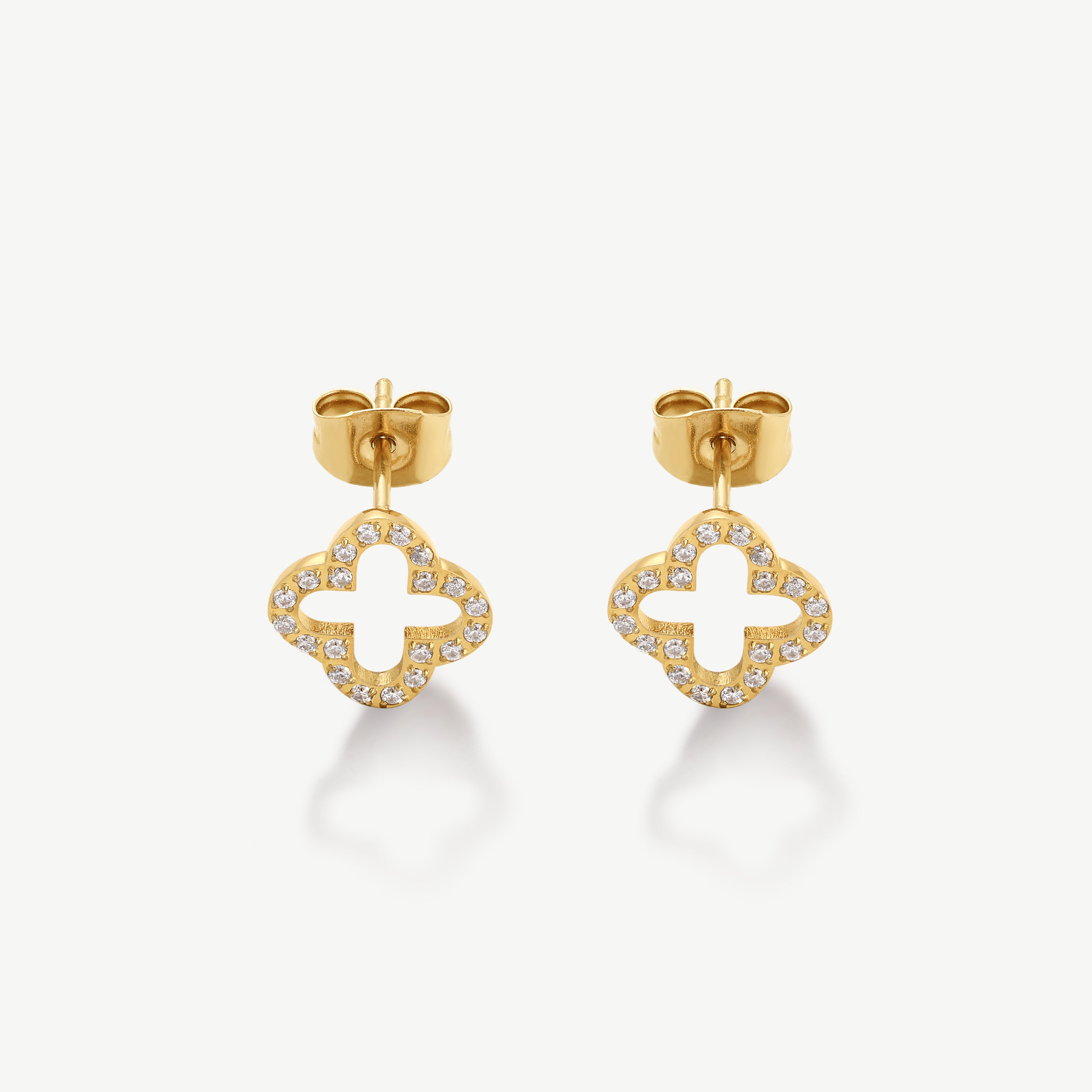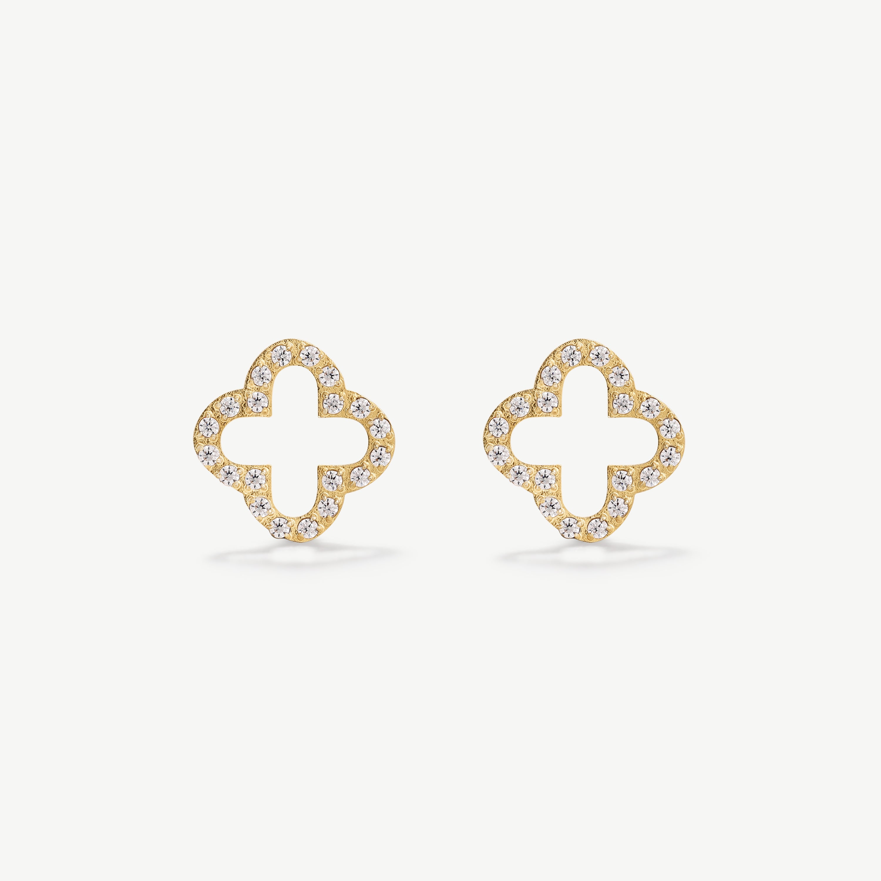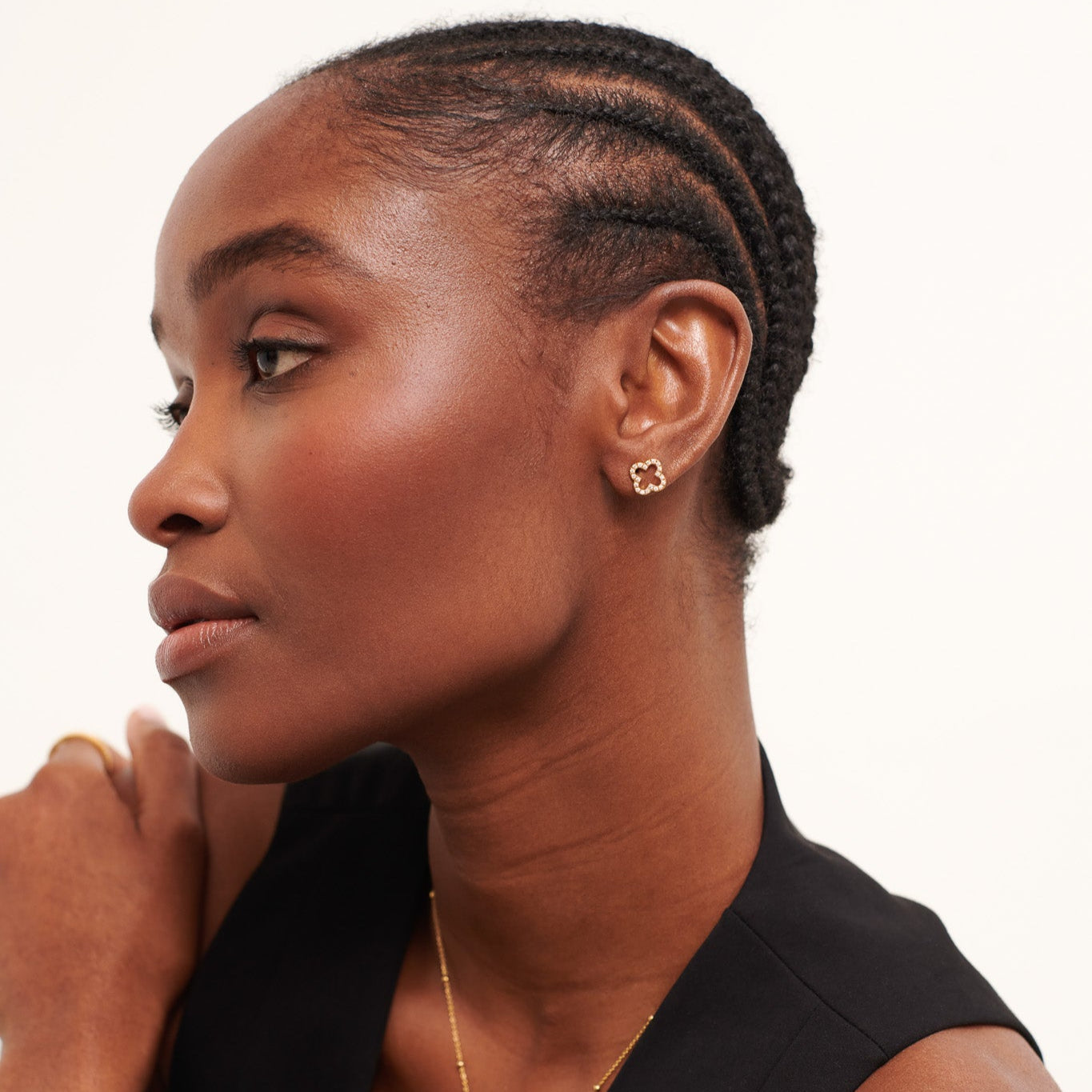 Introducing the Pavè Clover Studs. The intricate pavé outline adds a touch of sparkle to any ear stack, making these dainty studs a must-have accessory.