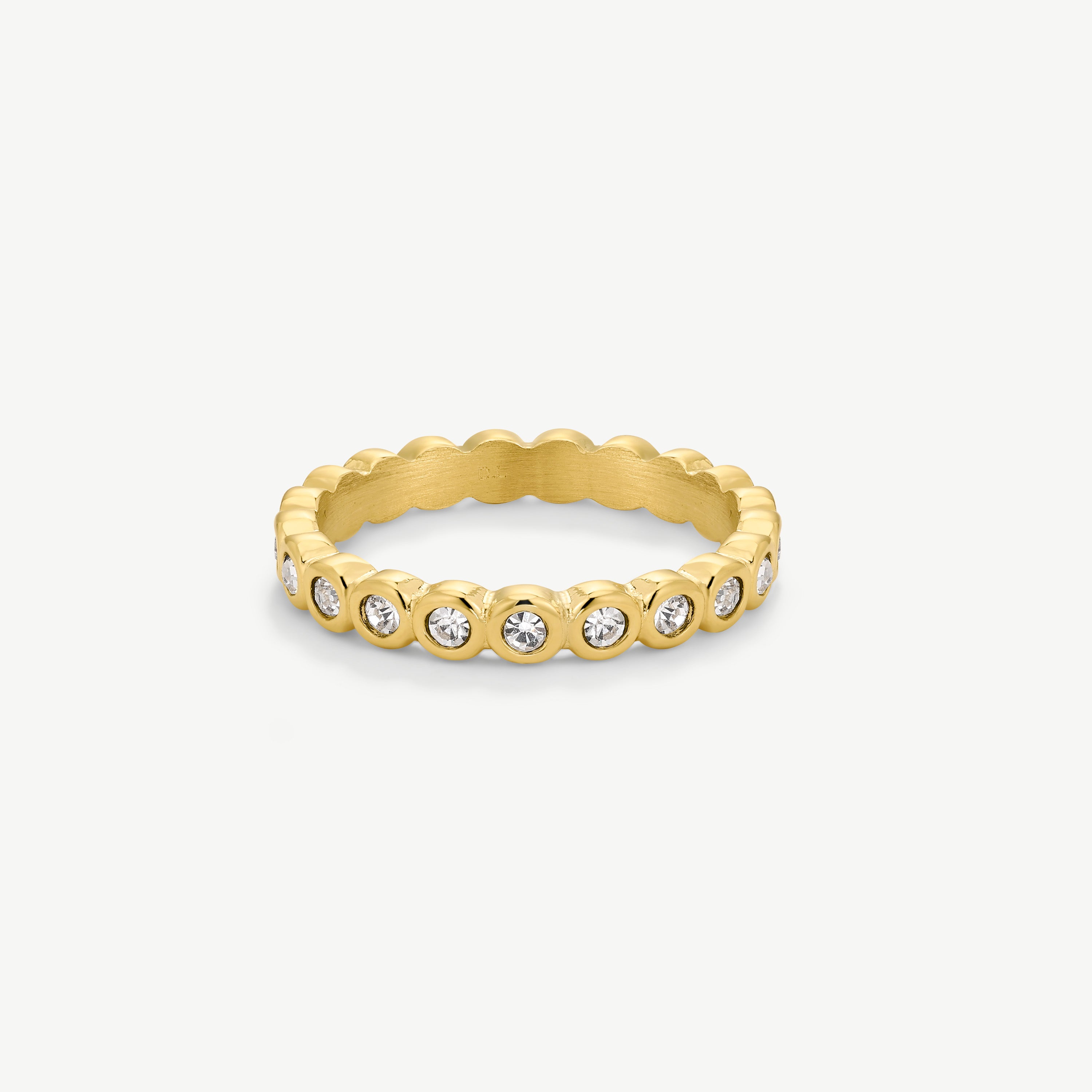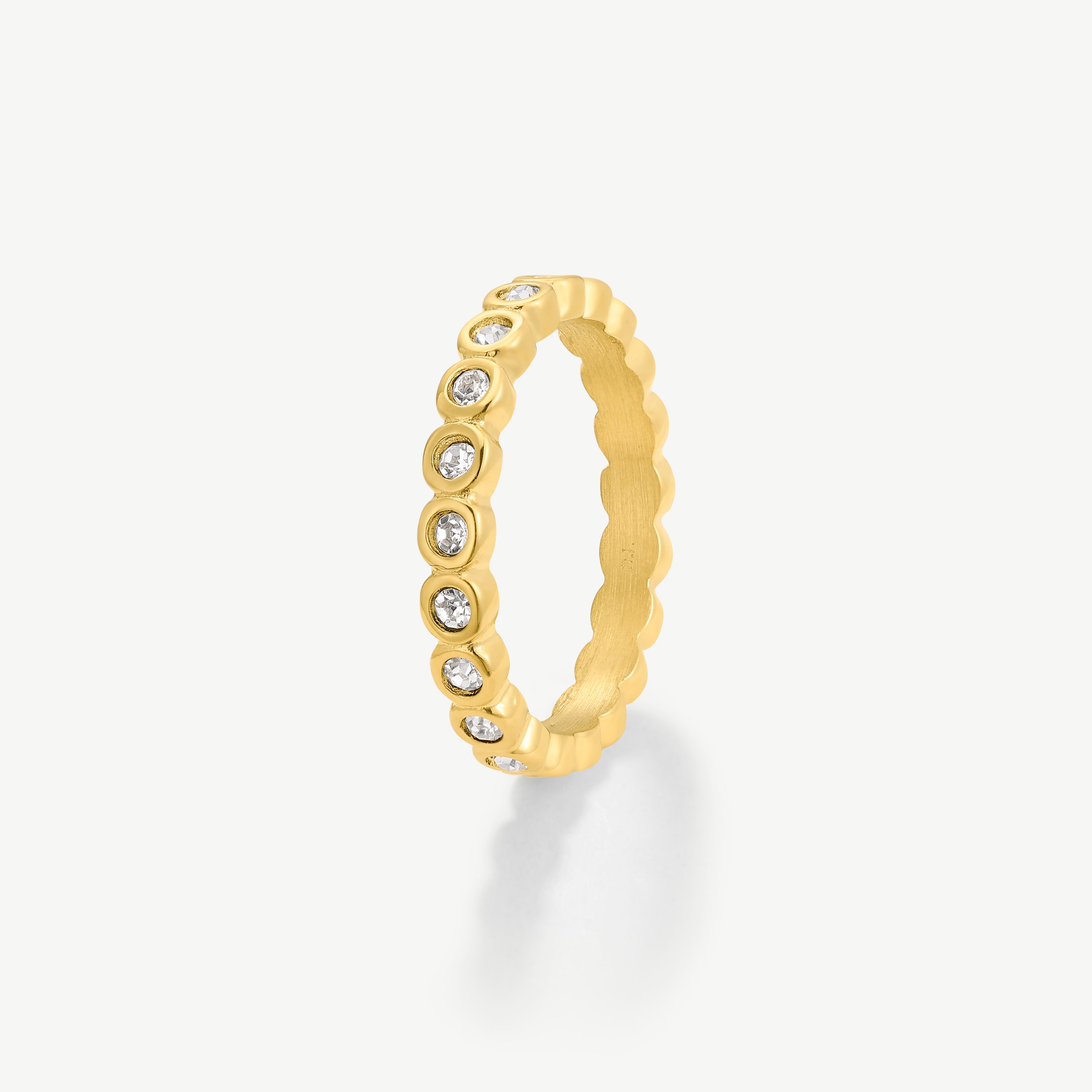 This tennis-inspired ring features stunning bezel and cubic zirconia details, creating a timeless and elegant look.