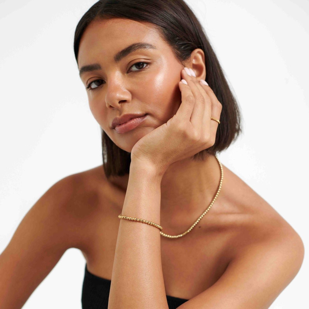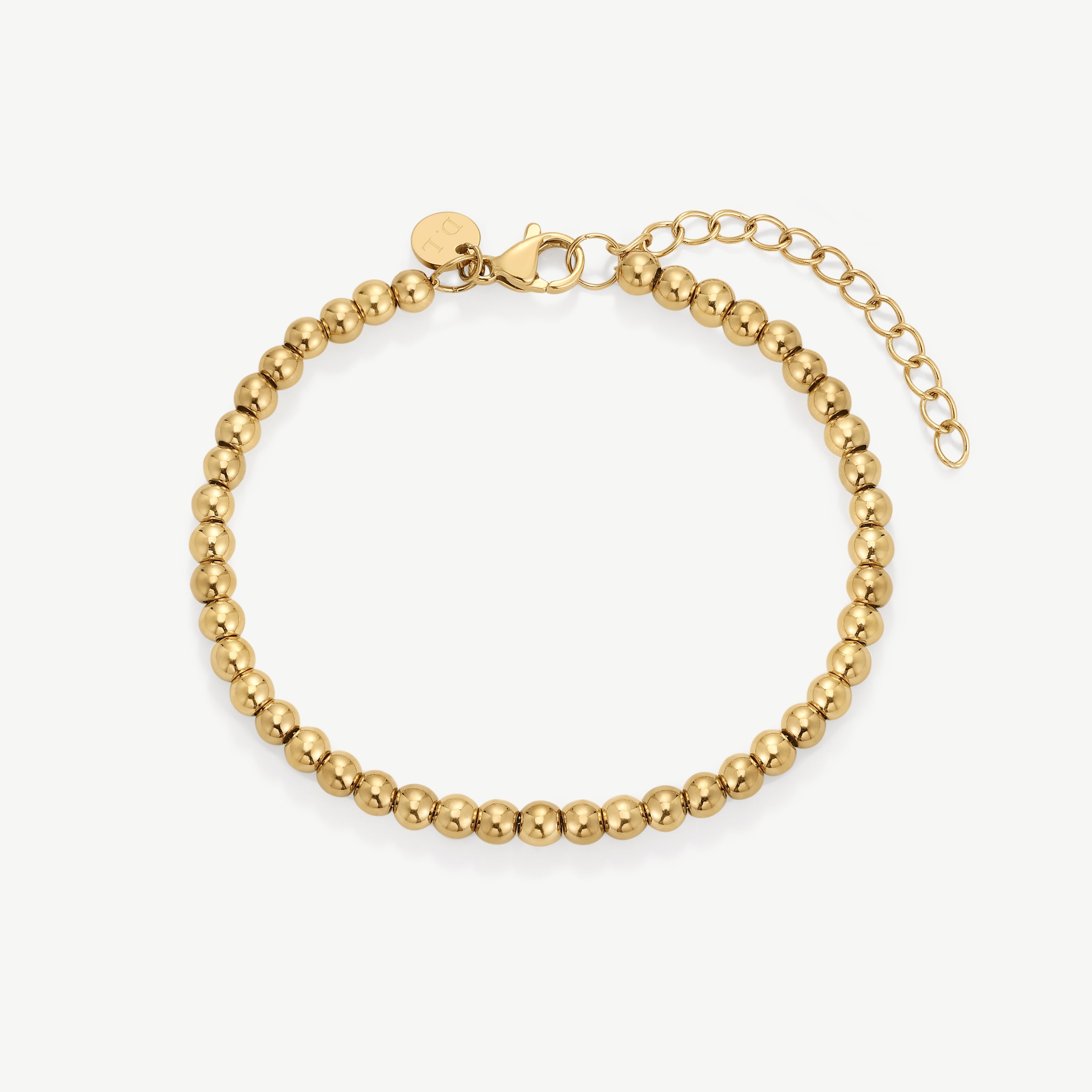 Get the perfect finish to your great outfit with the beautiful gold beaded bracelet. This beautiful, beaded bracelet is fitted with small gold beads which catch the light and shine beautifully.