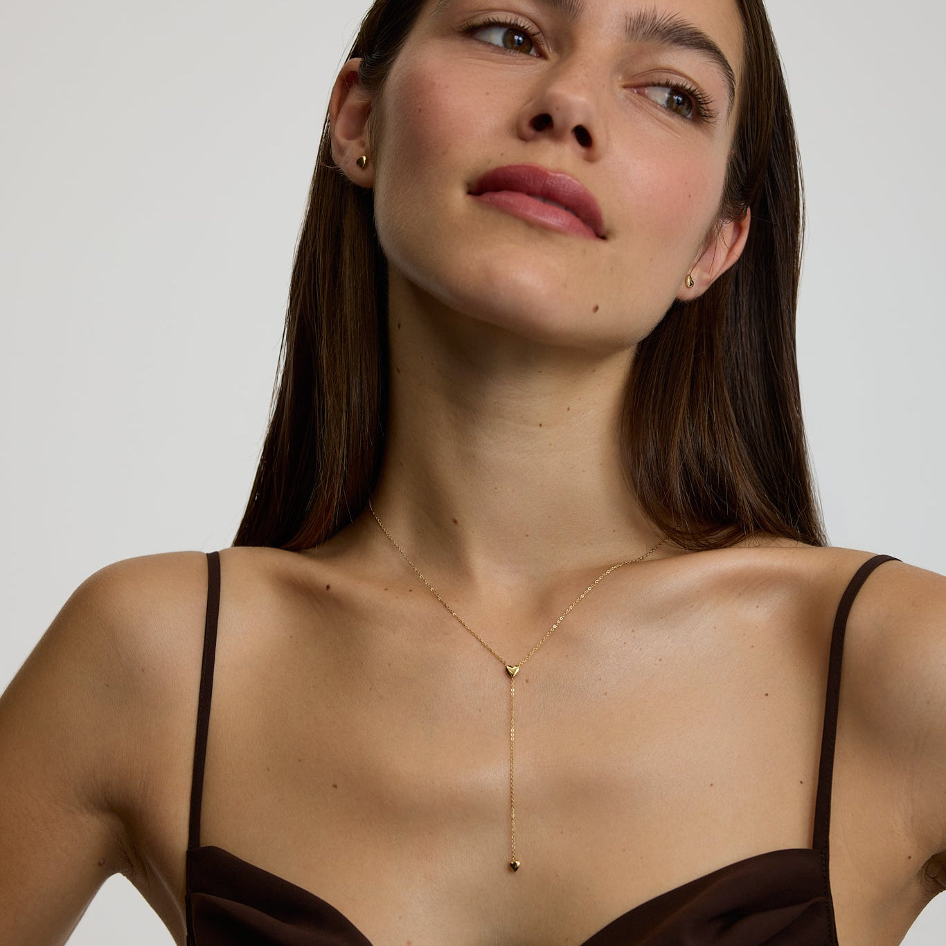 Details: A fine chain finished with a delicate heart detail, designed in a modern lariat style. Minimal, versatile, and perfect for adding effortless elegance to any neckline.
