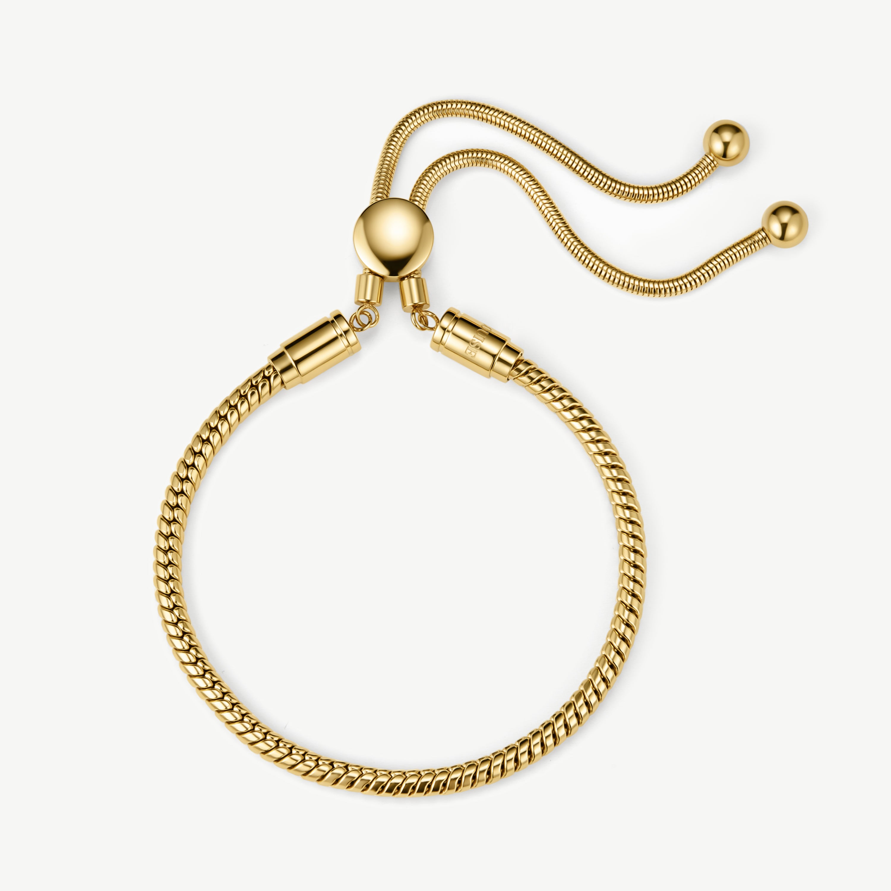Perfect for stacking or wearing alone, this snake chain friendship bracelet featuring a round adjuster is classic and versatile. This is the perfect gift for a friend.
