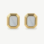 Details: These stunning studs feature a bold mother of pearl accent, adding a touch of elegance and a statement to your look.