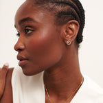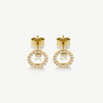 These beautiful studs feature a stunning pavé halo with a cubic zirconia accent; a truly unique piece that adds effortless elegance to any look.