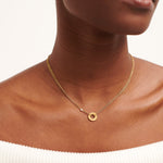 The Halo Disc Pendant With Stone is a modern take on a timeless piece. Its halo design, enhanced by a cubic zirconia stone, adds a touch of effortless elegance to any outfit.