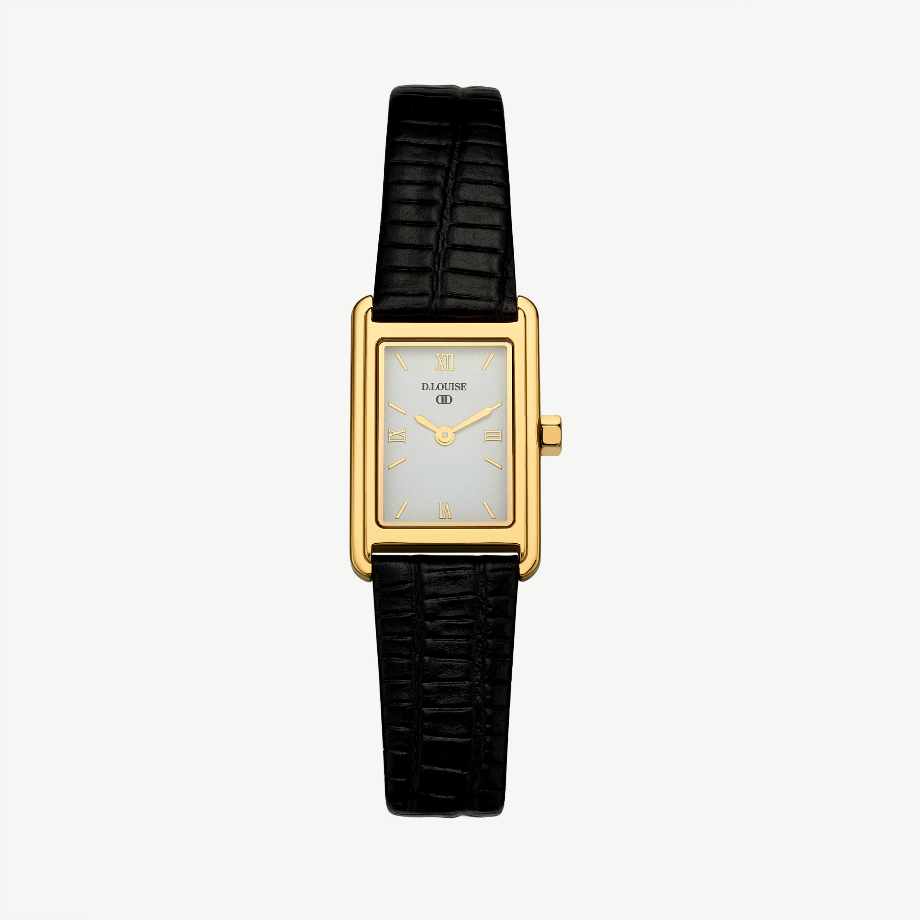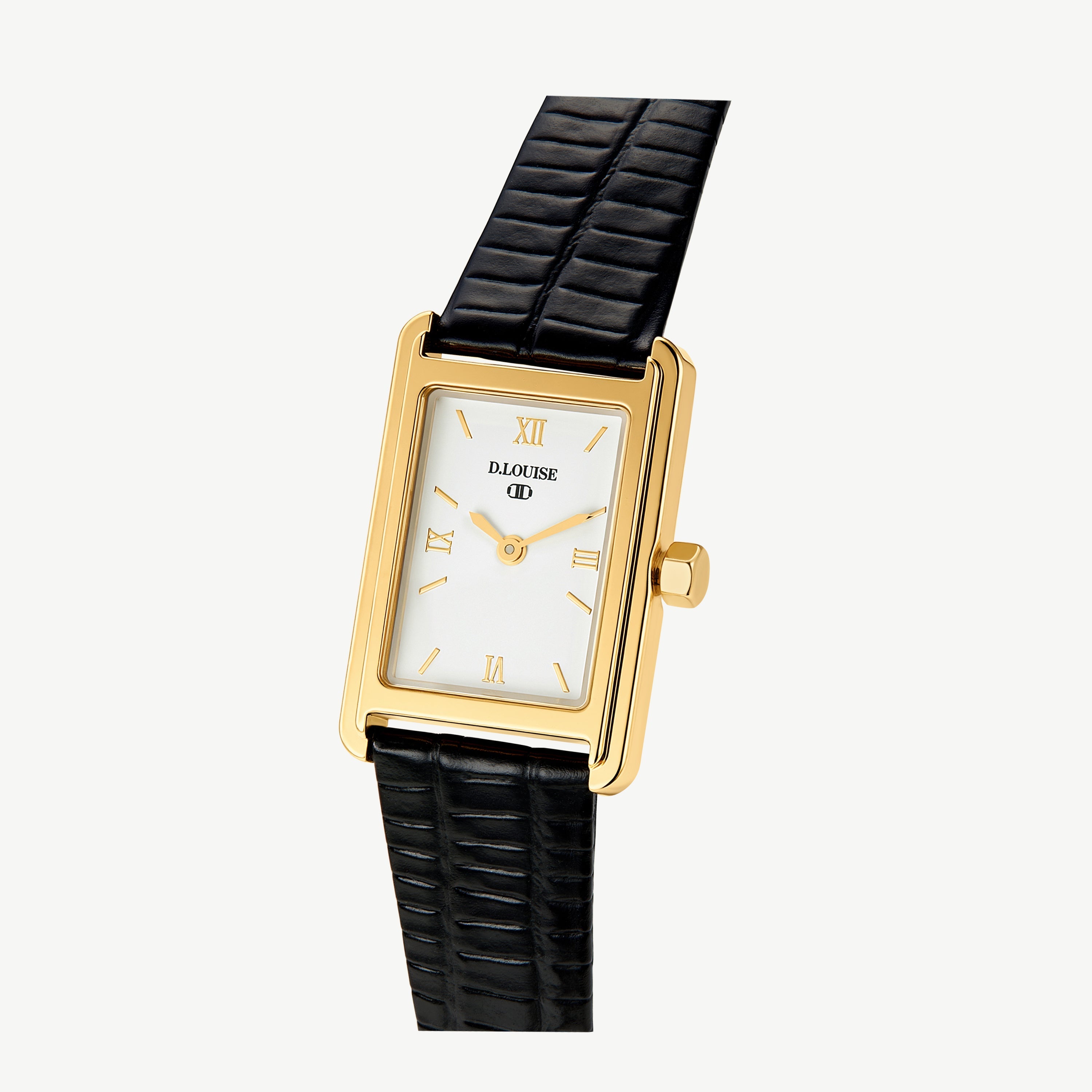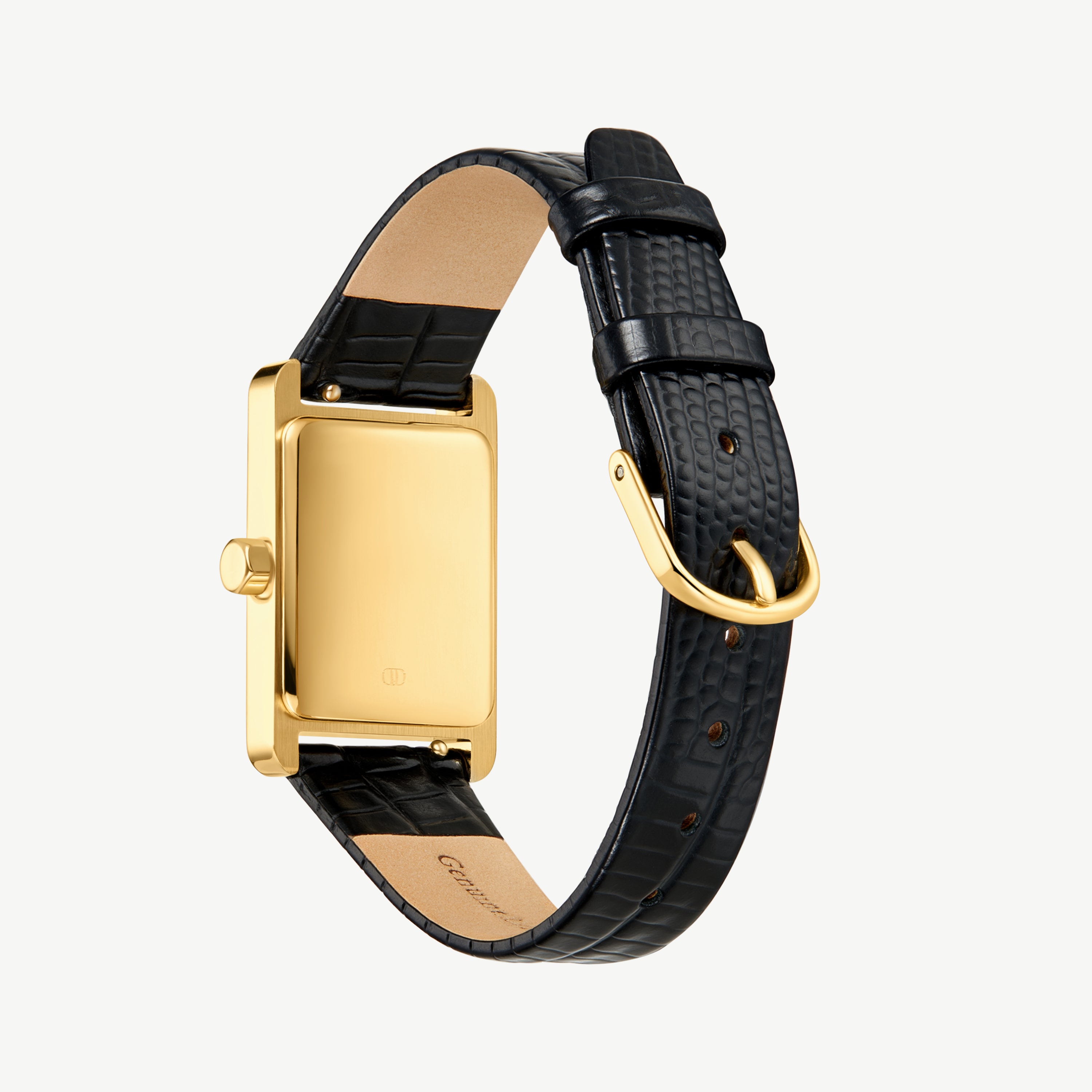 A timeless silhouette with a modern edge. The Classic Leather Rectangle Watch features a sleek gold case paired with a textured black croc-effect leather strap, a nod to classic elegance with a contemporary finish.