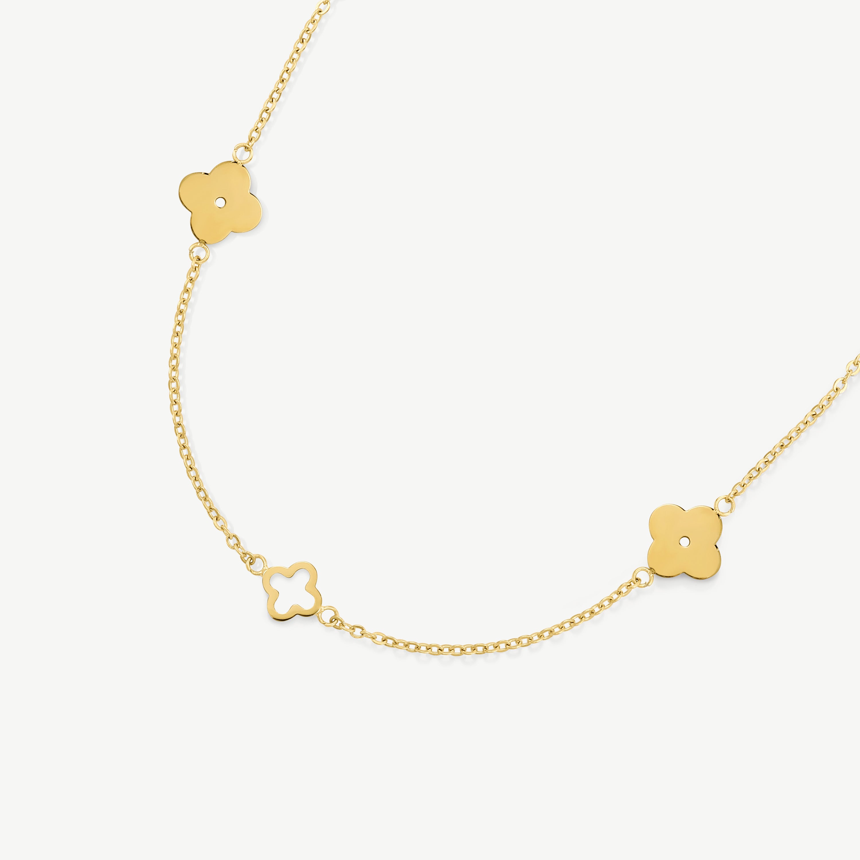 Featuring intricate cut out designs with solid clover details on a fine chain, the Multi Clover Necklace creates the perfect timeless look.